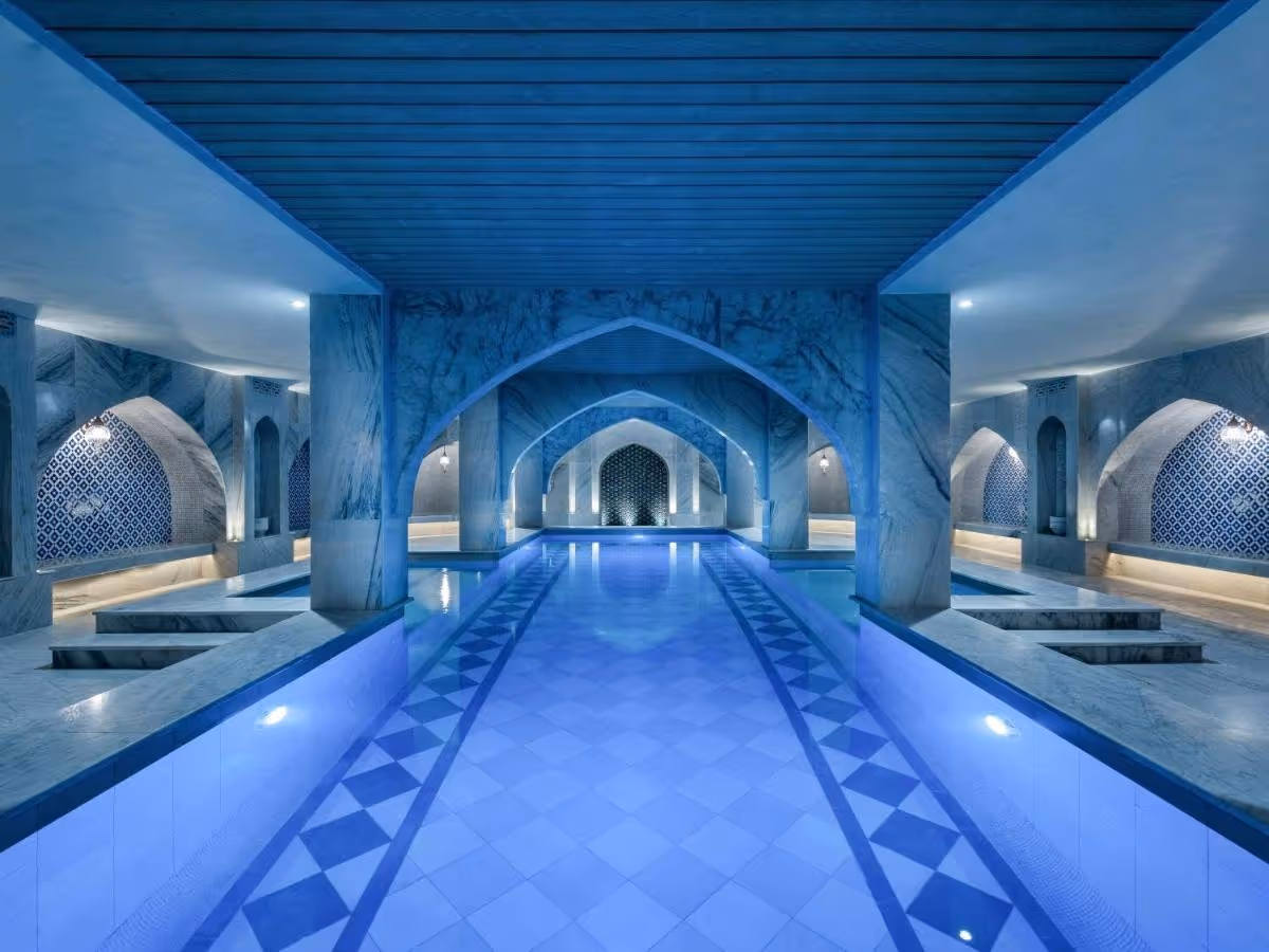 Un ancien palais restauré avec soin : patios fleuris, mosaïques séculaires, hammam traditionnel. Entre luxe discret et mémoire de la soie.
